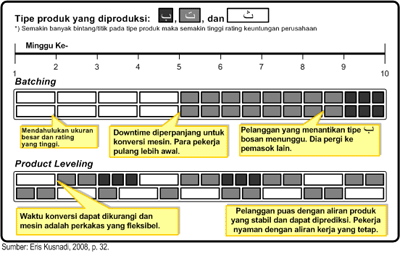 Apabila suatu produk lebih dari satu tipe maka product leveling adalah cara kritis untuk menghindari akibat-akibat di atas, sebagai ilustrasi lihat Gambar 1.